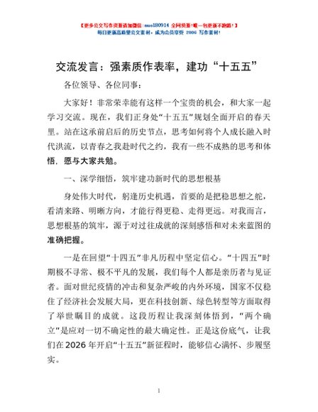 / 交流发言:强素质作表率,建功“十五五”
