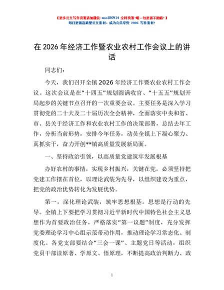 / 在2026年经济工作暨农业农村工作会议上的讲话