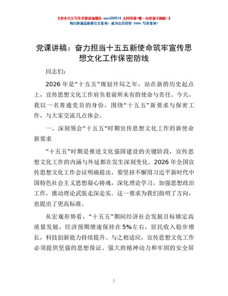 / 党课讲稿:奋力担当十五五新使命 筑牢宣传思想文化工作保密防线
