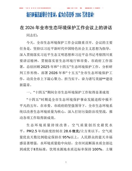 / 在2026年全市生态环境保护工作会议上的讲话