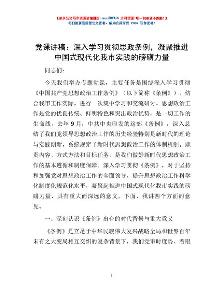 / 党课讲稿:深入学习贯彻思政条例,凝聚推进中国式现代化我市实践的磅礴力量