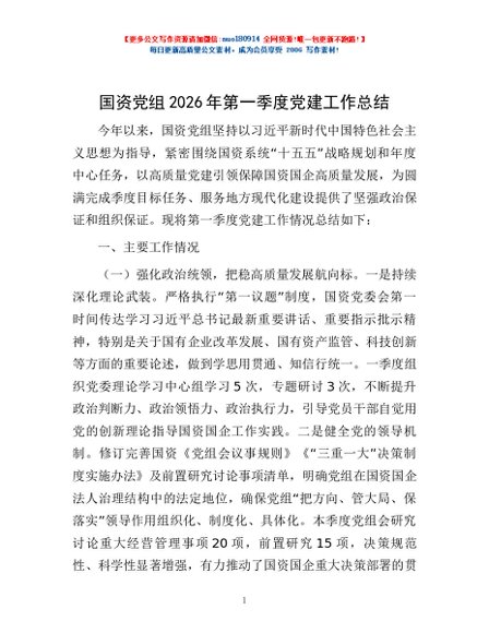 / 国资党组2026年第一季度党建工作总结