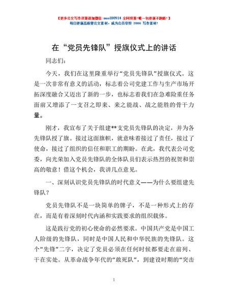 / 在“党员先锋队”授旗仪式上的讲话