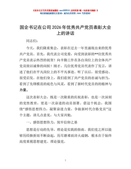 / 国企书记在公司2026年优秀共产党员表彰大会上的讲话