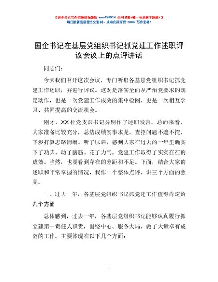 / 国企书记在基层党组织书记抓党建工作述职评议会议上的点评讲话