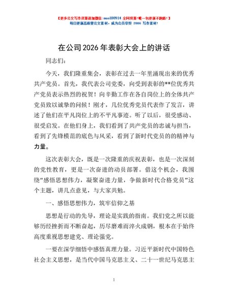 / 在公司2026年表彰大会上的讲话