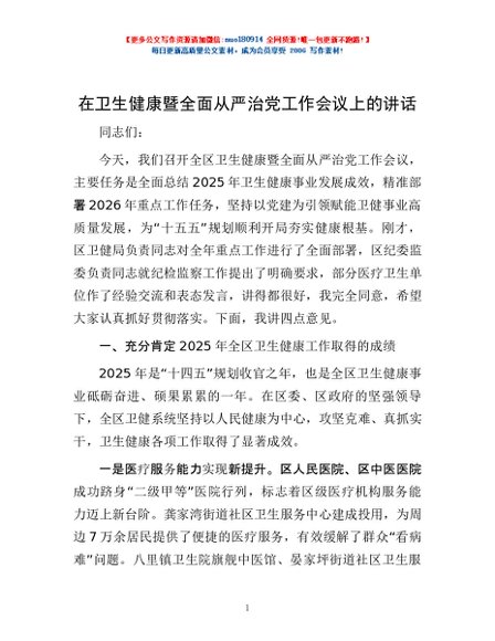 / 在卫生健康暨全面从严治党工作会议上的讲话