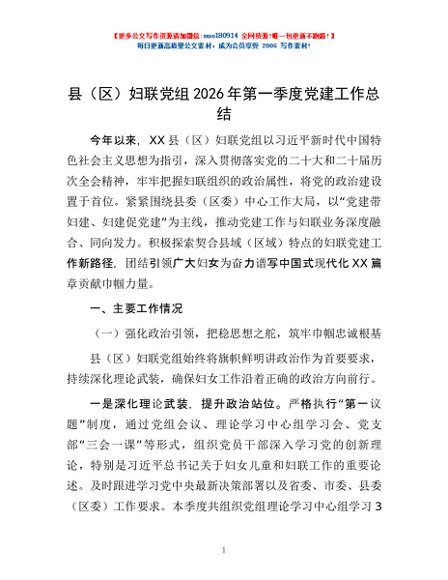 / 县(区)妇联党组2026年第一季度党建工作总结