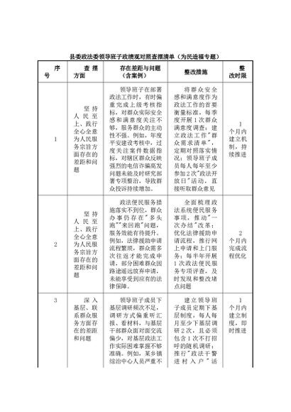 / 县委政法委领导班子政绩观对照查摆清单(为民造福专题)