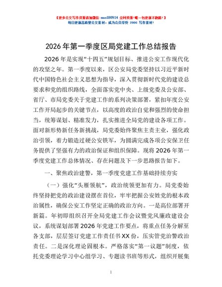 / 2026年第一季度区局党建工作总结报告
