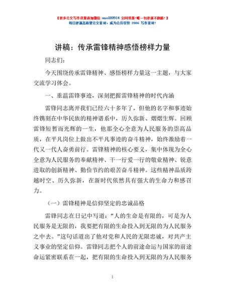 / 讲稿:传承雷锋精神 感悟榜样力量