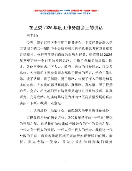 / 在区委2026年度工作务虚会上的讲话