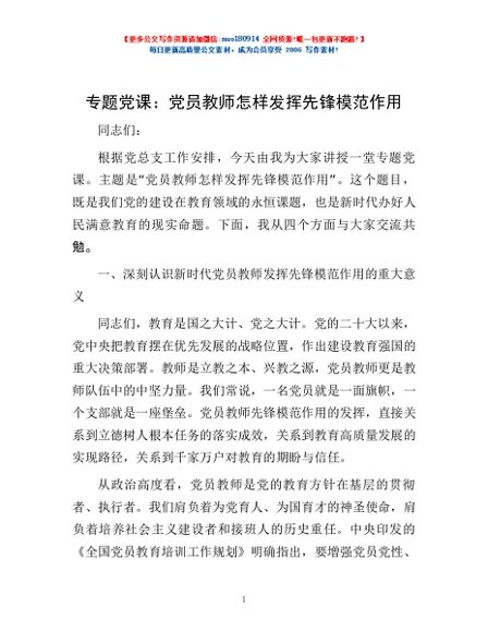 / 专题党课:党员教师怎样发挥先锋模范作用