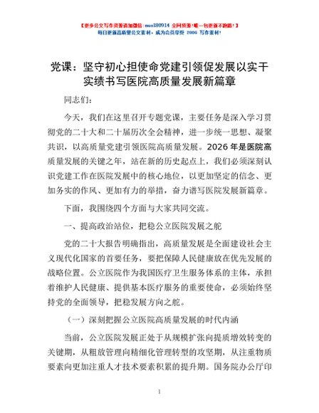 / 党课:坚守初心担使命 党建引领促发展 以实干实绩书写医院高质量发展新篇章