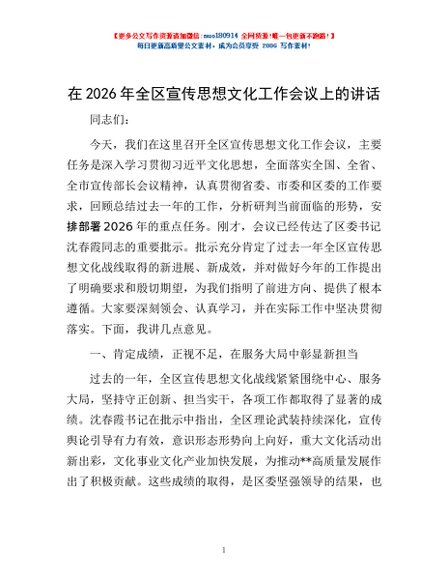 / 在2026年全区宣传思想文化工作会议上的讲话