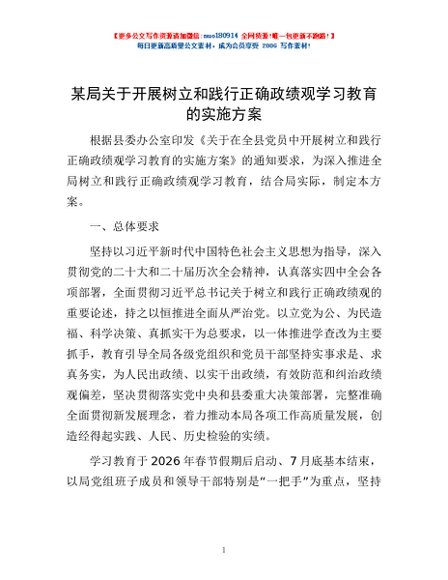 / 某局关于开展树立和践行正确政绩观学习教育的实施方案