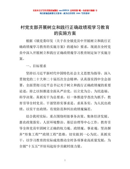 / 村党支部开展树立和践行正确政绩观学习教育的实施方案
