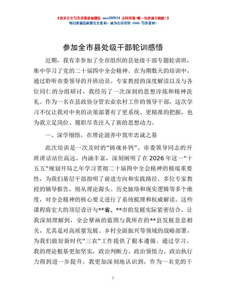 / 参加全市县处级干部轮训感悟