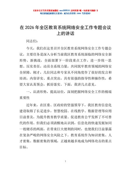 / 在2026年全区教育系统网络安全工作专题会议上的讲话