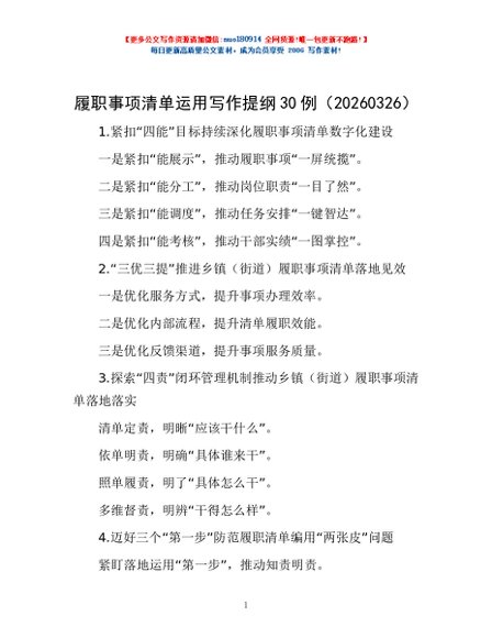 / 履职事项清单运用写作提纲30例(20260326)