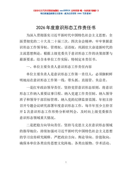 / 2026年度意识形态工作责任书