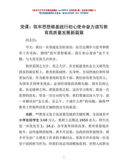 / 党课:筑牢思想根基 践行初心使命 奋力谱写教育高质量发展新篇章