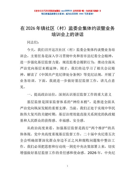 / 在2026年镇社区(村)监委会集体约谈暨业务培训会上的讲话