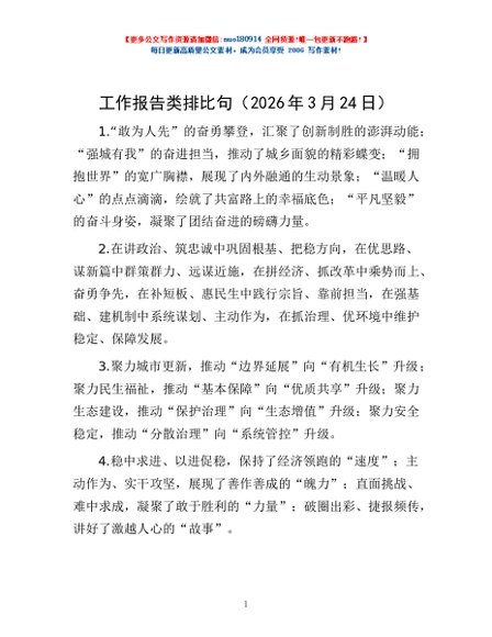 / 工作报告类排比句(2026年3月24日)