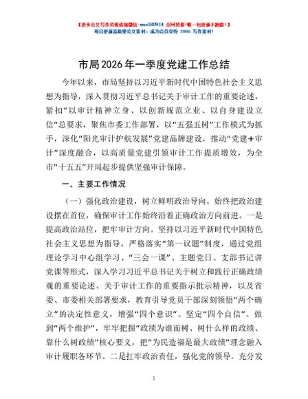 / 市局2026年一季度党建工作总结
