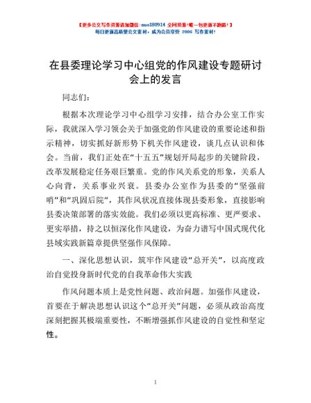 / 在县委理论学习中心组党的作风建设专题研讨会上的发言