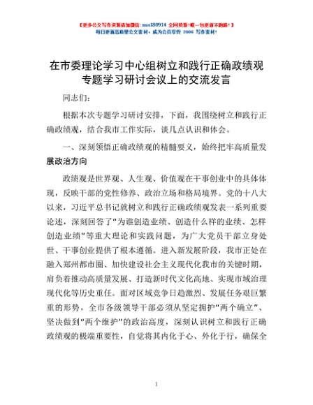 / 在市委理论学习中心组树立和践行正确政绩观专题学习研讨会议上的交流发言