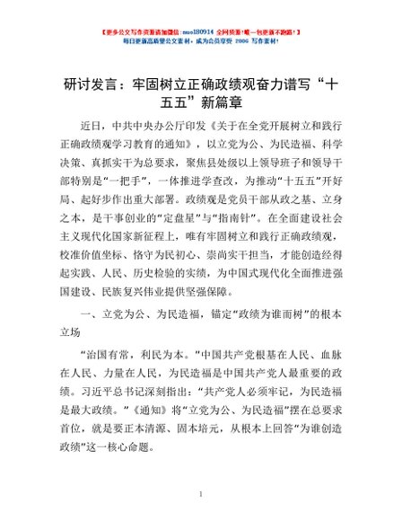 / 研讨发言:牢固树立正确政绩观 奋力谱写“十五五”新篇章