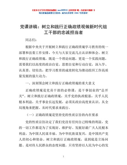 / 党课讲稿:树立和践行正确政绩观 做新时代组工干部的忠诚担当者