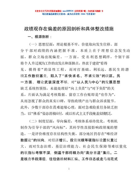 / 政绩观存在偏差的原因剖析和具体整改措施