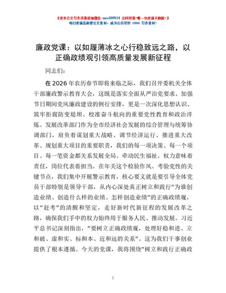/ 廉政党课:以如履薄冰之心行稳致远之路,以正确政绩观引领高质量发展新征程