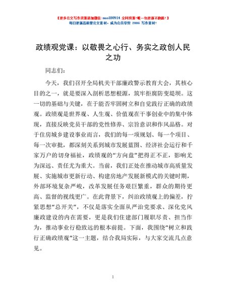 / 政绩观党课:以敬畏之心行、务实之政创人民之功