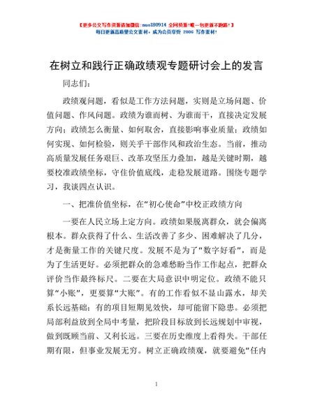 / 在树立和践行正确政绩观专题研讨会上的发言