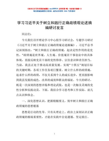 / 学习习近平关于树立和践行正确政绩观论述摘编研讨发言