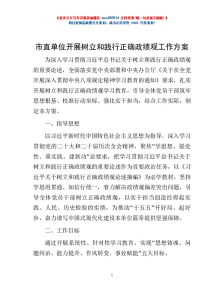 / 市直单位开展树立和践行正确政绩观工作方案