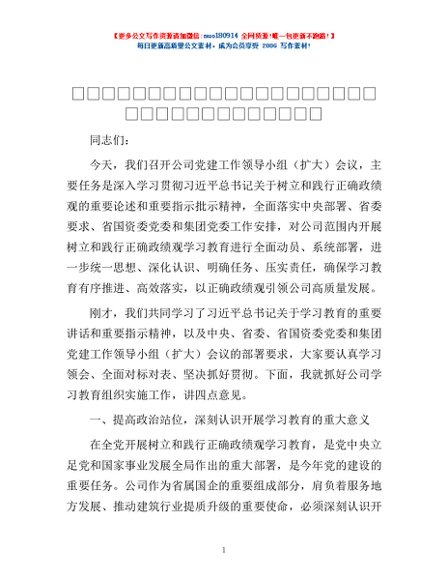 / 国有企业党委书记在树立和践行正确政绩观学习教育动员部署会议上的讲话