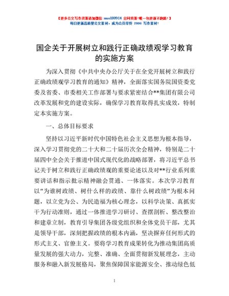 / 国企关于开展树立和践行正确政绩观学习教育的实施方案