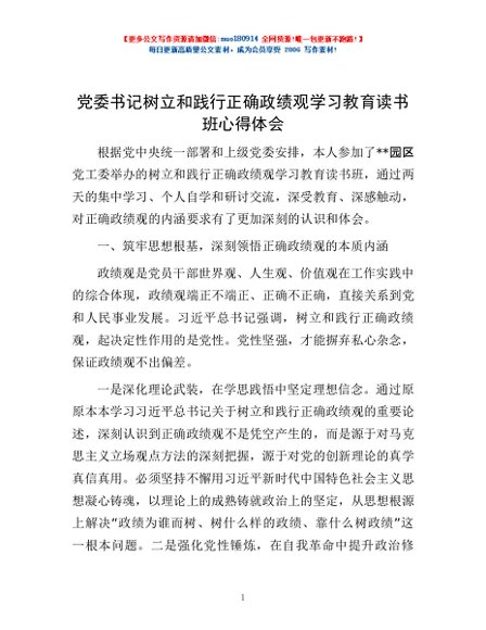 / 党委书记树立和践行正确政绩观学习教育读书班心得体会