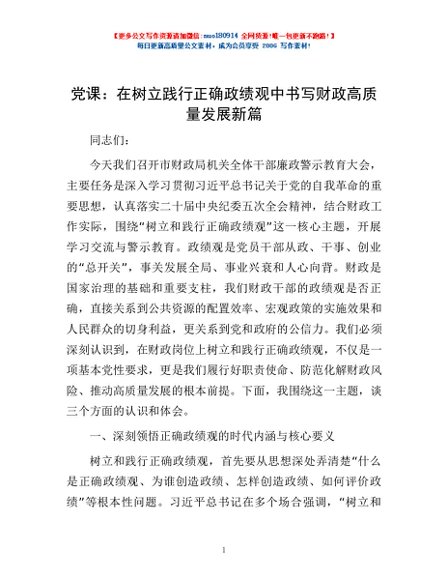 / 党课:在树立践行正确政绩观中书写财政高质量发展新篇