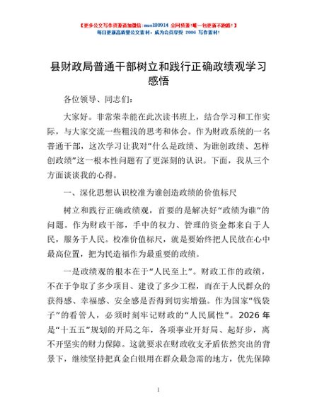 / 县财政局普通干部树立和践行正确政绩观学习感悟