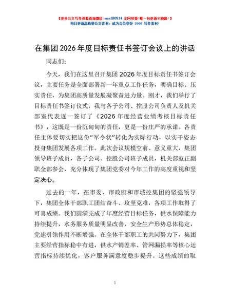 / 在集团2026年度目标责任书签订会议上的讲话