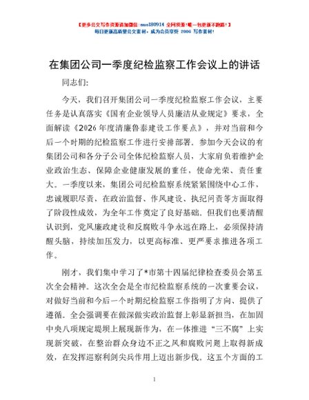 / 在集团公司一季度纪检监察工作会议上的讲话