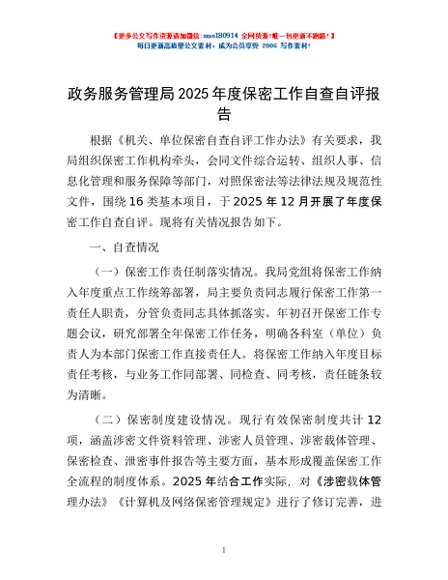 / 政务服务管理局2025年度保密工作自查自评报告