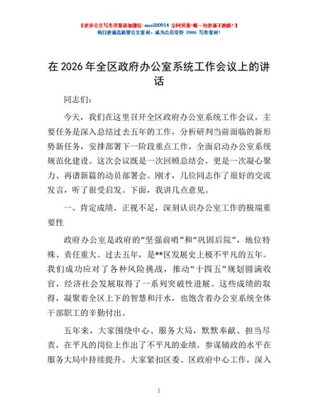 / 在2026年全区政府办公室系统工作会议上的讲话