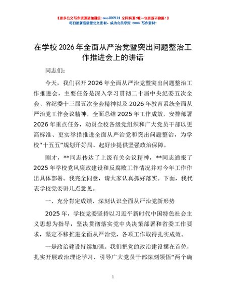 / 在学校2026年全面从严治党暨突出问题整治工作推进会上的讲话