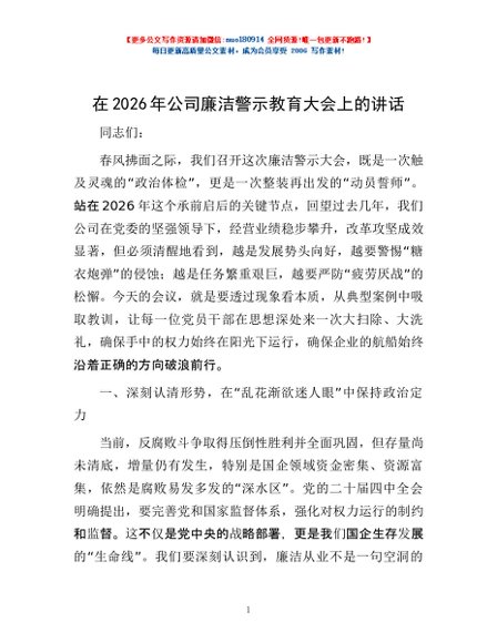 / 在2026年公司廉洁警示教育大会上的讲话